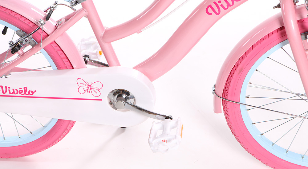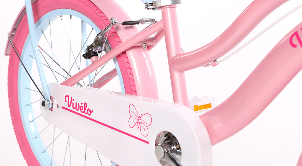 Vivelo Butterfly to coś więcej niż rower. To pastelowy towarzysz codziennych przygód, pierwszych samodzielnych wypraw i radosnych kilometrów pokonywanych z uśmiechem. Stworzony z myślą o dziewczynkach w wieku od 7 do 9 lat, zachwyca lekką formą, delikatnymi kolorami i dbałością o każdy detal.